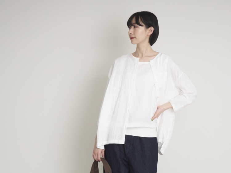 ガーゼはパジャマや寝具などでお馴染みであることからもわかるように、その肌触りの良さと通年活躍する機能性はお墨付きの素材です。とろけるような着心地を、デイリーウェアとしても是非楽しんで頂きたいと思います。