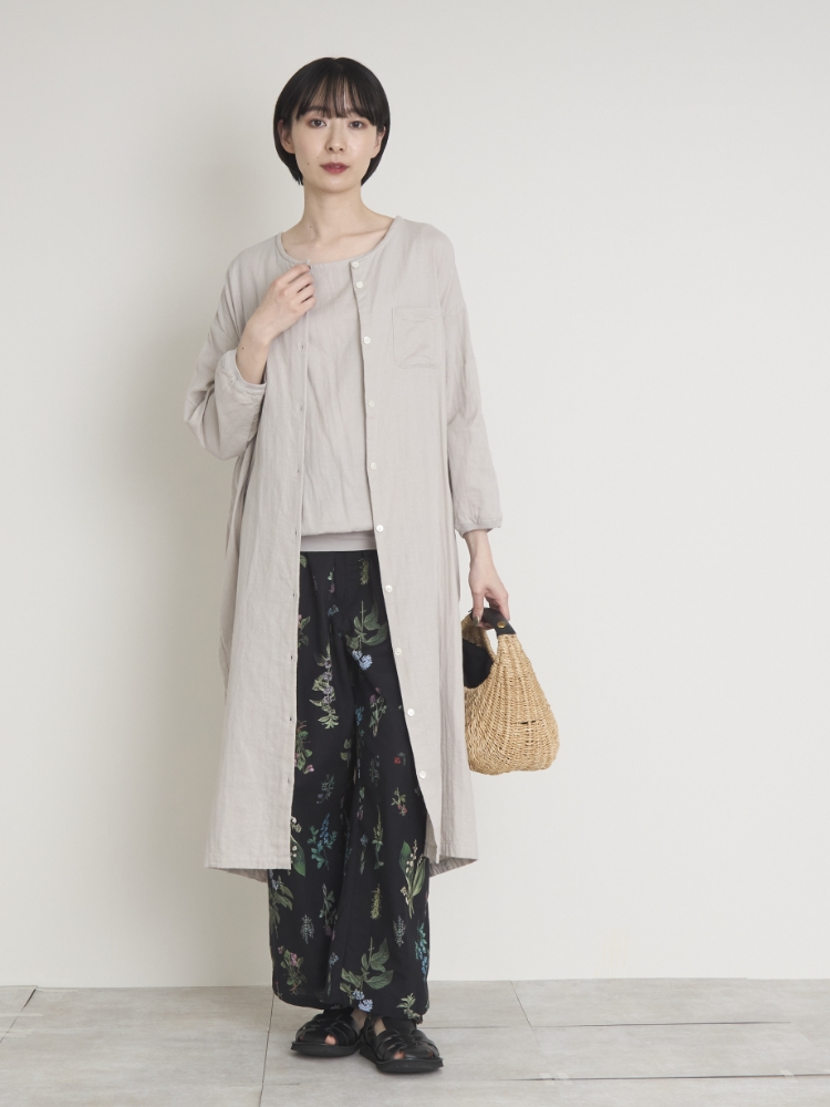 同素材のシャツやワンピースもあるので、セットで着るのもおすすめです。