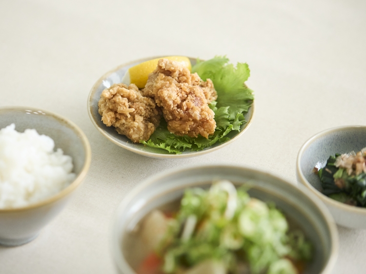 セットになっているのは、「いつもの取り皿」「しっくり茶碗」「ばんのう丸小鉢」「たっぷり汁碗」の4つです。それらに盛る献立、収まる量で、栄養も見た目もバランスよく整えられるようにとよく考えられているのが特徴。同時に、料理に合った器を選ぶ手間も省けるから、忙しい毎日に不可欠な「時短」にも優しく寄り添ってくれます。