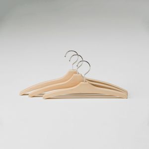 cosineのハンガーは、紳士服の肩幅に合わせた「大」、婦人服の肩幅に合わせた「中」、首周りの狭い服や子供用にもお使いいただける「小」の3サイズがあります。いずれも木の質感を最大限に活かすオイルフィニッシュ仕上げ。ハンガーを使う度に、温もりに満ちた優しい木の感触を楽しめます。