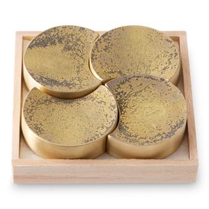 富山・高岡にて明治30年創業の鋳物メーカー「二上」が立ち上げた、真鍮の生活用品ブランド「FUTAGAMI」。こちらは、2010年の新作第一弾の箸置きです。 「光」をテーマに形作られた、真鍮の箸置きの特徴は、鋳肌を活かした仕上げになっていること。通常は塗装に代表されるような2次加工を行いますが、この箸置きは型から取り出したそのままの状態。 軽く磨いただけの、素朴な風合いが魅力です。あとから手直しがきかない分、フォルム、鋳肌の仕上がりのクオリティが高ければこそ実現したプロダクトです。 真鍮という素材の特徴を活かした、神秘的な質感と独特の光り具合が愛らしく、一つ一つに光のテーマを持ち、テーブルの上でも充分な存在感を放ちます。 ぴったりと美しい形で収まる専用の木箱に入り、小さな箸置きは収納時にばらばらになりにくいようにというつかい手への配慮。大事に使えば一生モノです。生活に馴染み、経年変化を楽しむことの出来る味わい深い生活道具は、結婚祝いやギフトにもおすすめの一品です。